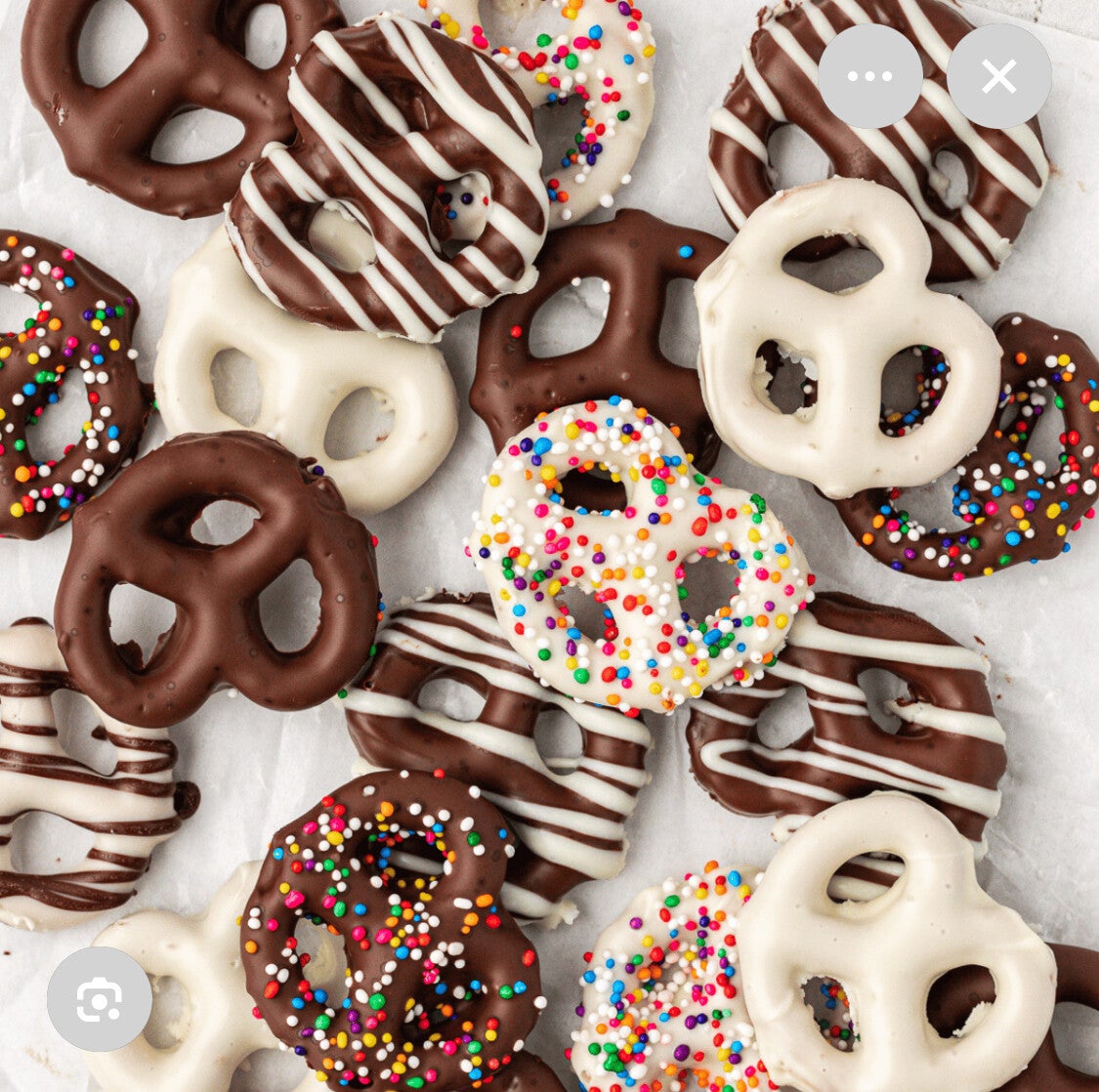 Delicious hand, dipped chocolate, pretzels, chocolate, white, and dark chocolate